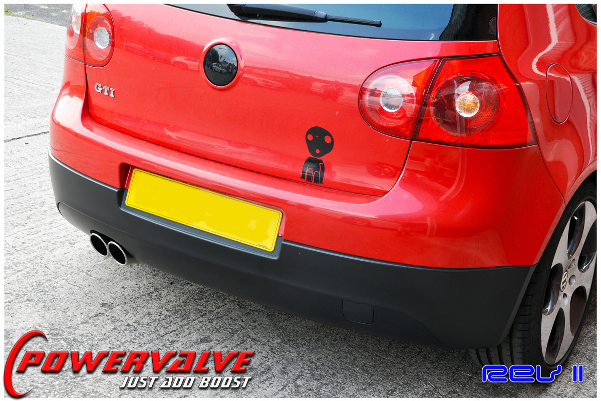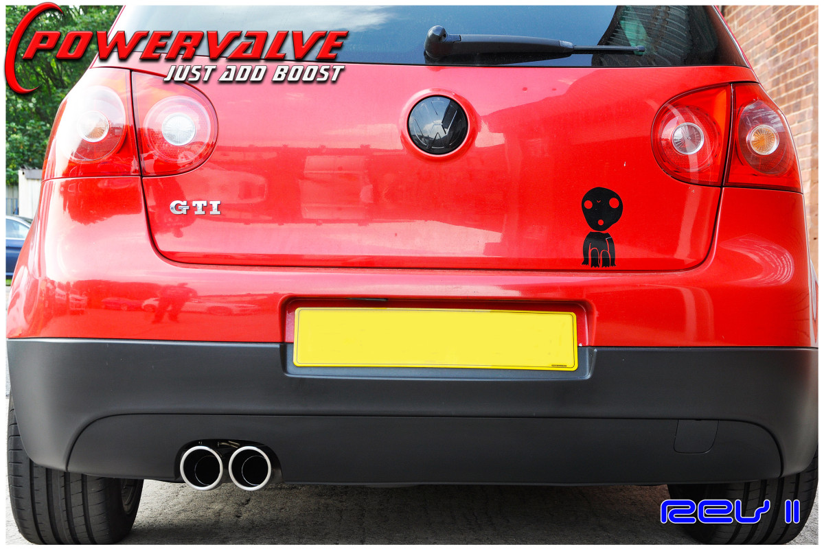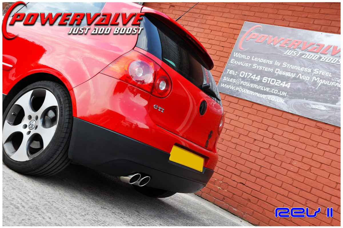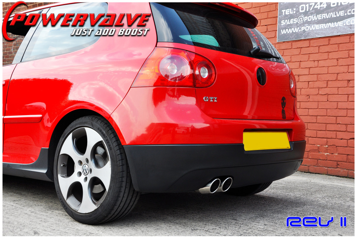 The Powervalve REV II Turbo-back (with 125mm road-legal 100/200 cell cat) SPORT exhaust is our mid-range option for the VW Golf GTi Mk5 2.0 TFSi, providing you with a perfectly balanced sports tone both externally and internally above the stock exhaust note, when the car is running off boost (Cruising and driving sedately). However, as you are no doubt already aware if you are looking to create the best possible audible thrill...