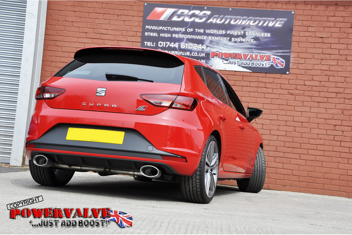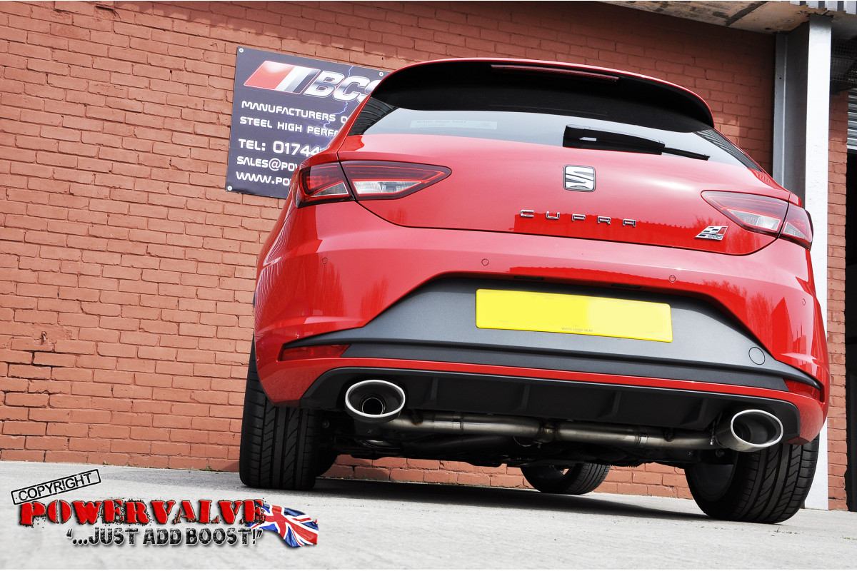 The Powervalve REV II Turbo-back (with the FLOW90 90.00mm road legal 100/200 cell cat) SPORT exhaust is our mid-range option for the Seat Leon Cupra R 280/290 2.0 TSi, providing you with a perfectly balanced sports tone both externally and internally above the stock exhaust note, when the car is running off boost (Cruising and driving sedately). However, as you are no doubt already aware if you are looking to create the best possible audible thrill...