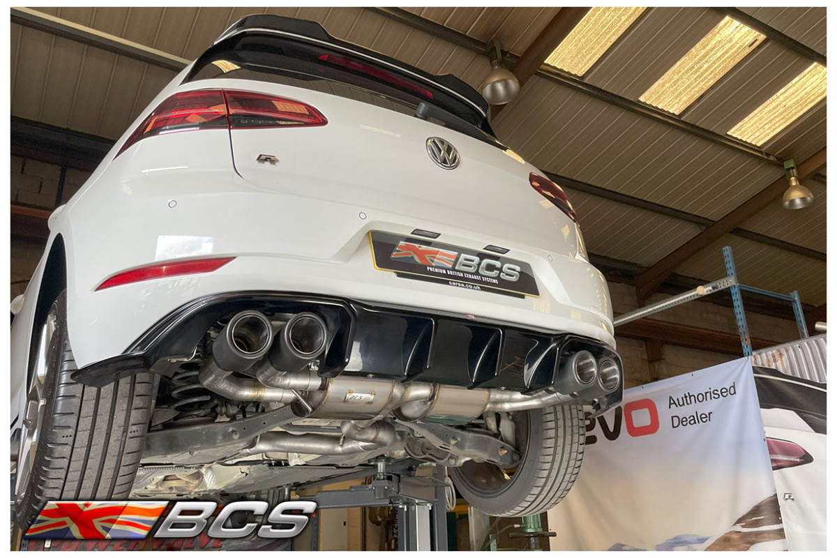 The BCS Valveless system is our acoustically tuned, dual tone Cat back system for the Golf R Mk7.5 GPF 2.0 TSi, providing you with the maximum possible full-time audible thrill from your Golf. The system has a greater audible volume than the stock exhaust offering, however, with careful design and development we have created a system that ensures that any unwanted in-car frequencies are removed, leaving you with a perfect drone-free experience, together with our characterful pop and burble, free-revving sound.